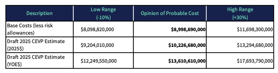 Source: IBR Project Estimate Document August 15, 2025